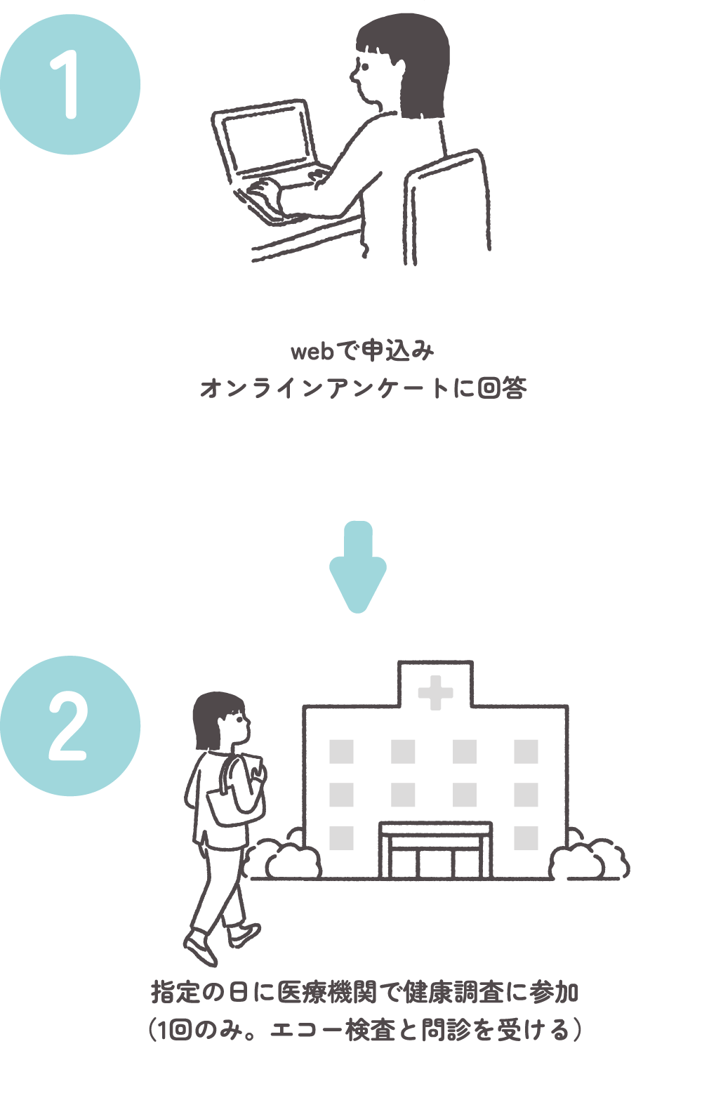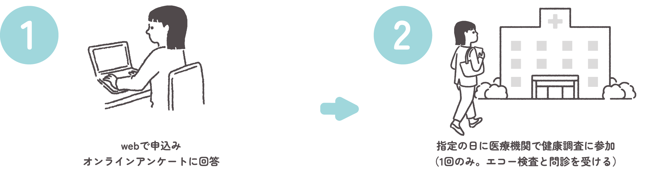 ※交通費は自己負担となります。 - 検査結果レポート健康調査に最後までご協力いただいた方には、エコー検査の簡易レポート(医師のコメントあり)をお渡しします。
